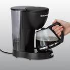 Päälle/pois kytkin Lasikannu 10 kupille Suodatinpaperi 1 x 4 Musta muovirunko