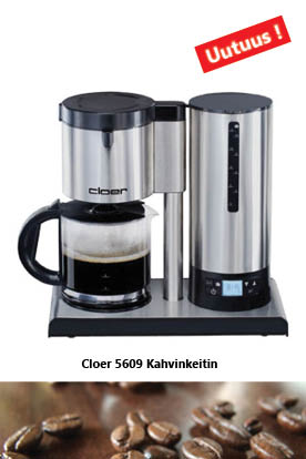 Uutuudet | Cloer | Vedenkeittimet | Leivänpaahtimet | Kahvinkeittimet | Tehosekoittimet | Blenderit | Vohveliraudat | Teenkeittimet | Miniuunit Induktiolevyt | Keittiövaaka | Barbecue-grillit | Kahviperkolaattori | Munankeittimet | Kontaktigrillit Lämpölevyt | Raclette | Voileipägrillit | Sandwich | Panini | Mehupuristimet Sähkögrillit | Pienkeittiölaitteet | Design Mokkapannu | Espressokeitin |